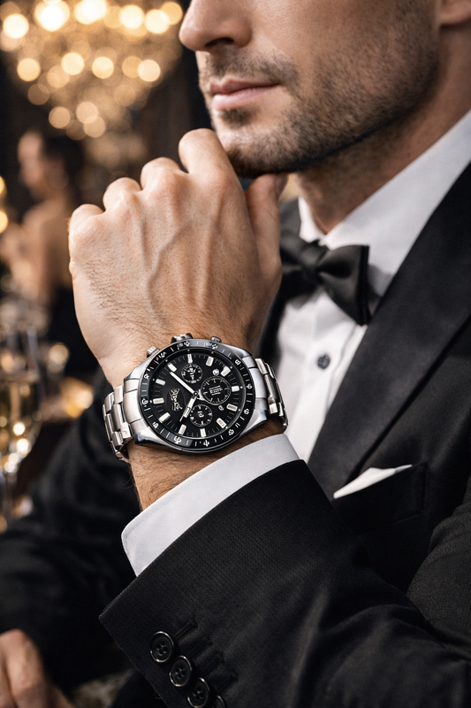 TECKMOOR Men's Watch LIGE Multi-Function Three-Eye Corrugated Watch - Silver Black